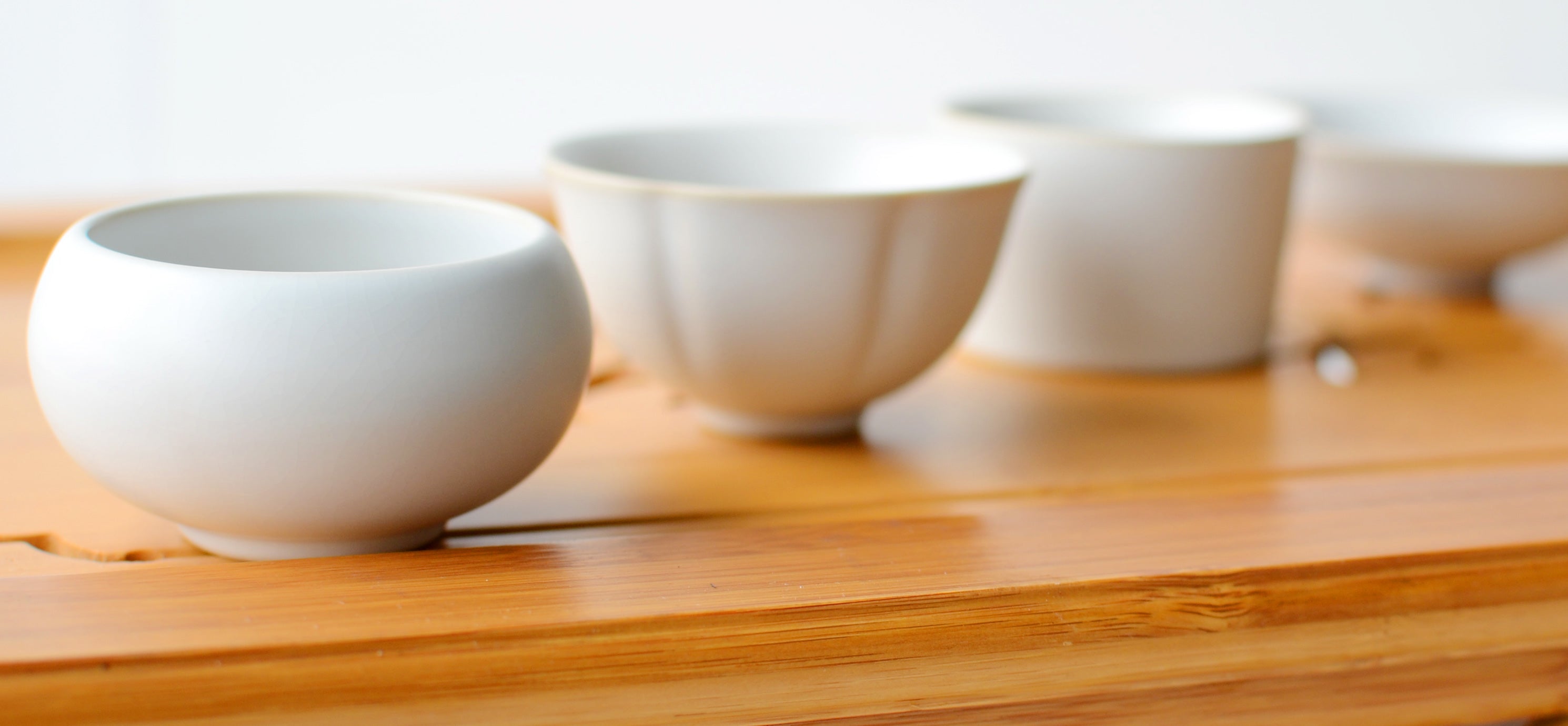 Gongfu teacups in a wide range of sizes, glazes and styles