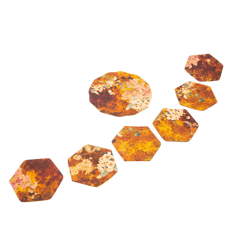 A double-layered cloth set designed for resting teapots and teacups. Same in color and material on both sides, each set includes six teacup rests and one teapot rest.